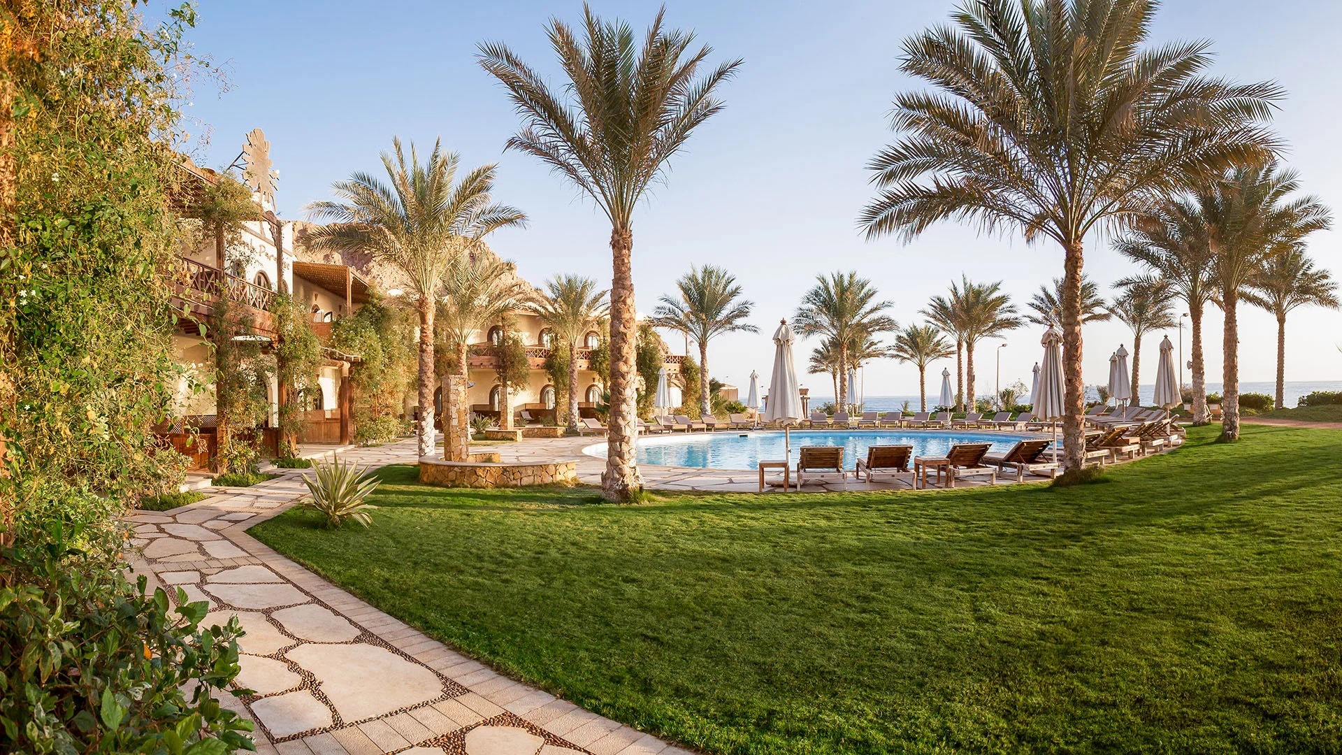 Entfliehe dem Alltag im Hotel Paradise, einem Rückzugsort direkt am Roten Meer. Zwischen der beeindruckenden Wüstenlandschaft des Sinai und dem kristallklaren Wasser des Golfs von Akaba gelegen, bietet dieses Hotel eine perfekte Mischung aus entspanntem Lifestyle und ägyptischer Gastfreundschaft.