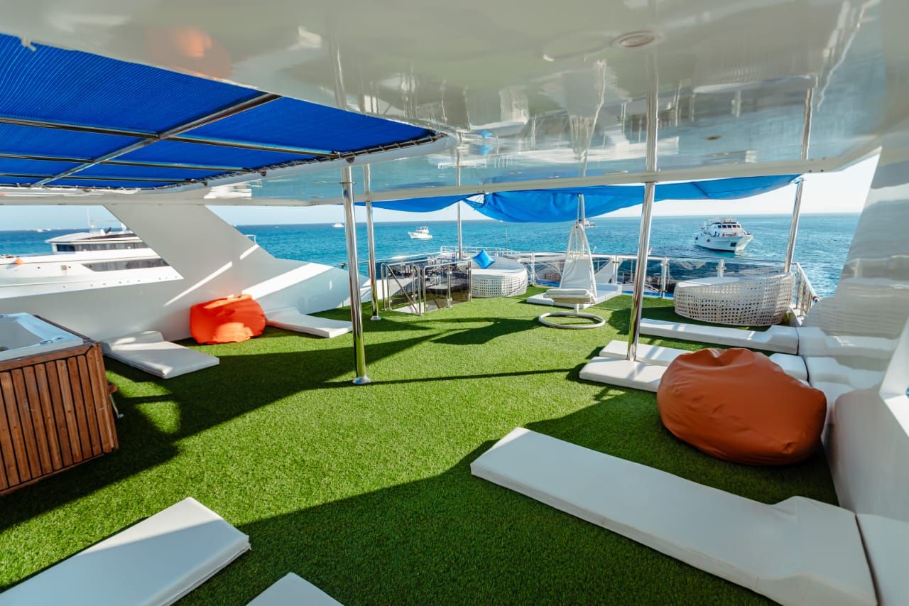 Alle Kabinen sind mit eigenem Bad/WC ausgestattet. Der Salon und der Essbereich laden zum Entspannen ein. Die beiden Sonnendecks sind sehr geräumig und großzügig mit Matratzen und Kissen ausgestattet. Sie eignen sich ideal, um zwischen den Tauchgängen ein Nickerchen zu machen, sich mit anderen Tauchern zu unterhalten, ein Buch zu lesen oder den Sonnenuntergang zu genießen.